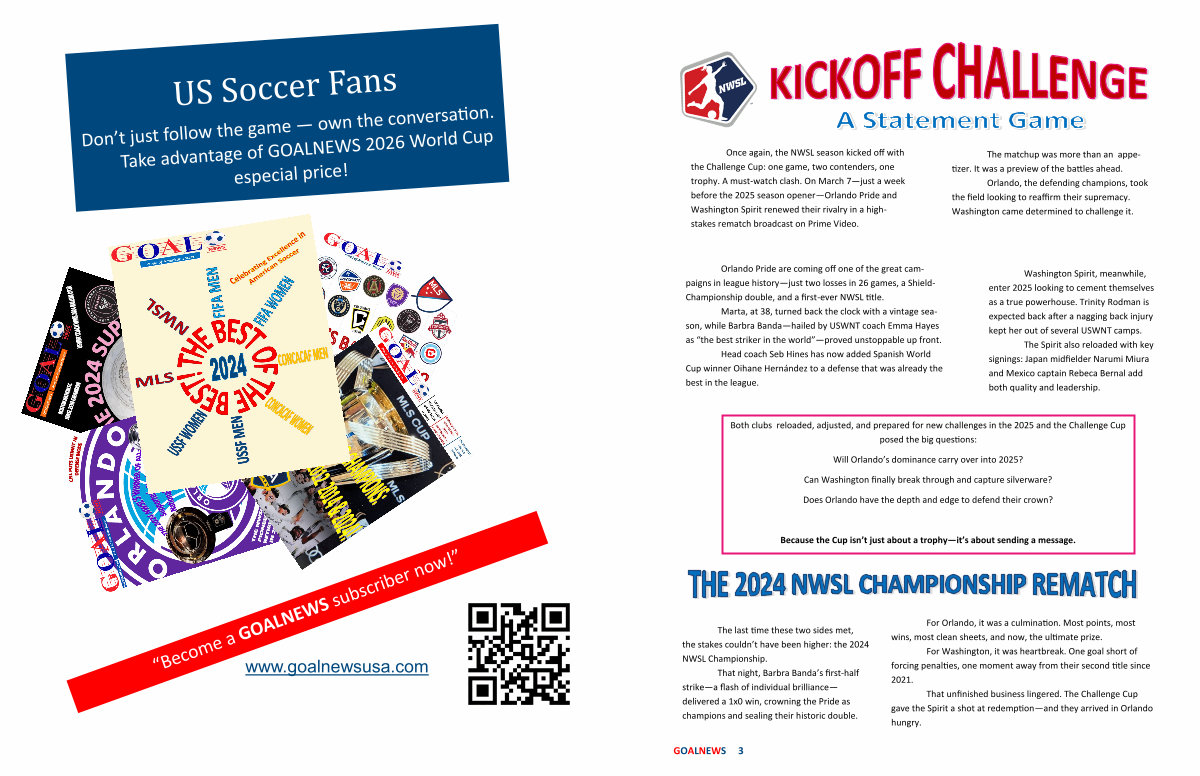 Once again, the NWSL season kicked off with the Challenge Cup: one game, two contenders, one trophy. A must-watch clash. On March 7— just a week before the 2025 season opener— Orlando Pride and Washington Spirit renewed their rivalry in a highstakes rematch broadcast on Prime Video.