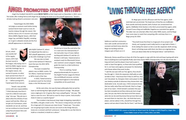 Angel City Football Club ( ACFC ) named BECKI TWEED as their head coach on November 2 , 2023 . Just a few weeks after making history with Angel City by leading the team to its first playoff appearance , Tweed is already looking ahead to preseason next year .