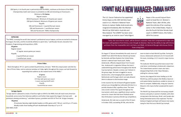 The U . S . Soccer Federation has appointed Emma Hayes as the 10th full-time head coach in U . S . Women ’ s National Team history to replace Vladko Andronoski who resigned immediately after the Women World Cup 2024 held in Australia and New Zealand . The USWNT has been since managed by an interim coach Twila Kilgore .