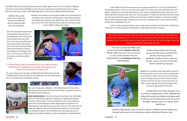 Campbell , who recorded a career-high eight shutouts for the Houston Dash , returns to the roster for the first time since November of 2021 , when she was in the training camp in Australia but did not play in either of the two matches on the trip . Her most recent cap was Oct . 26 , 2021 , vs . Korea Republic . She has four shutouts in her seven career appearances for the USA .